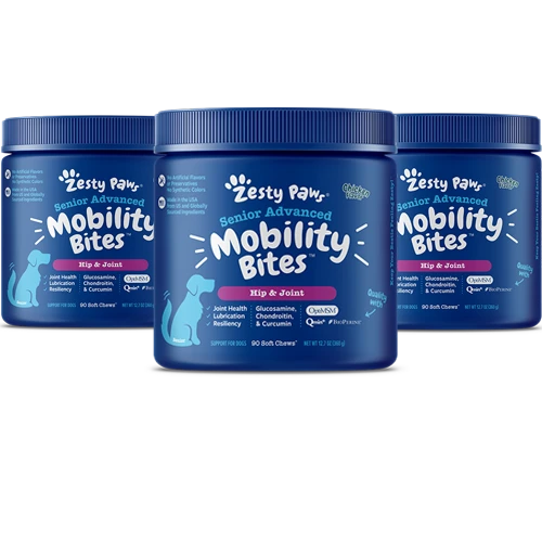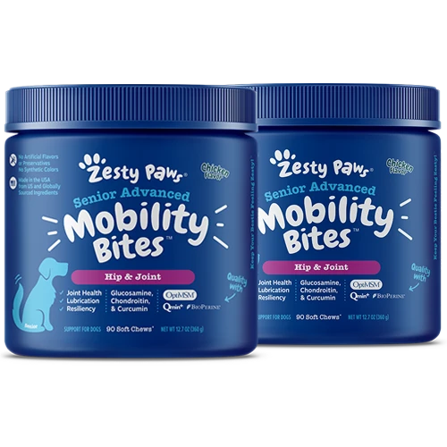 These chicken-flavored chews are best suited for senior dogs or any dogs with prominent hip and joint discomfort. Powerful, branded ingredients, Qmin+™, BioPerine®, and OptiMSM®, are combined with Glucosamine, Chondroitin, New Zealand Green Lipped Mussel, Hyaluronic Acid, and Vitamin C to support mobility, flexibility, cartilage, and joint function.