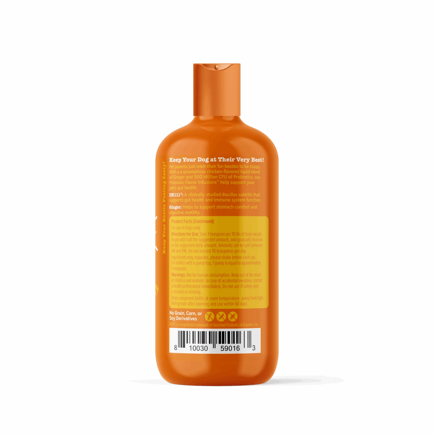 Pet parents just want their fur-besties to be happy. With a scrumptious chicken-flavored liquid blend of Ginger and 500 Million CFU of Probiotics, our Probiotic Flavor Infusions help support your pet’s gut health. This product features DE111®, a clinically studied Bacillus subtilis that supports gut health and immune system function.