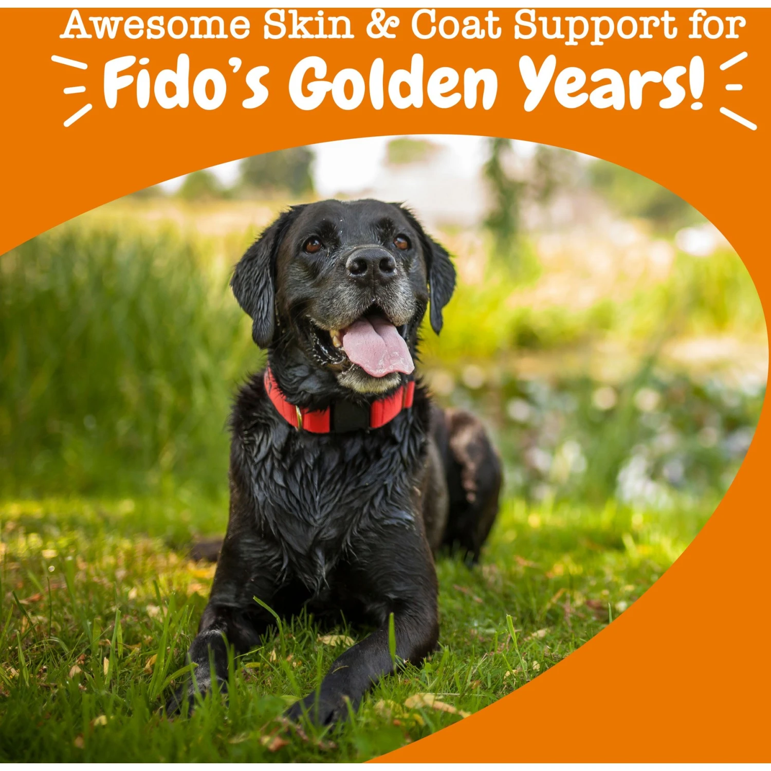 - Senior Advanced Omega Bites are chicken-flavored chewables that provide omega-3 fatty acids (with EPA and DHA) plus vitamins C and E to support skin health.