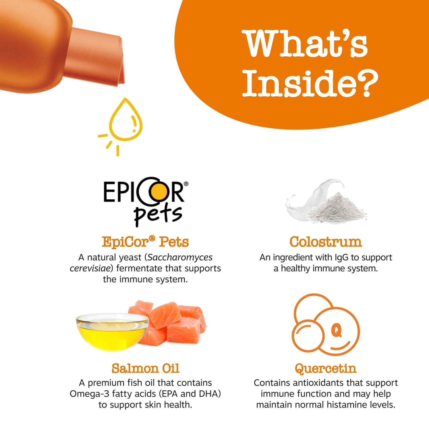 - Simply add this liquid supplement to your dog’s favorite wet or dry food for immune and histamine support.