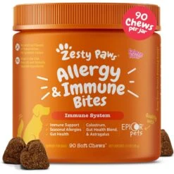 If you worry about sensitive skin and want to provide seasonal allergy support for dogs and relief for you, Zesty Paws Aller-Immune Bites are here for you! Made with EpiCor, salmon fish oil (with omegas for fatty acid support for immune health), colostrum, astragalus root, a gut health blend, and apple cider vinegar, this soft chew formula may provide seasonal allergy support, along with supporting the immune system, skin health, and normal gut flora. These chews may also help maintain normal histamine levels for canine companions, no matter the breed and for all ages. Best of all, these chews taste amazing and you’ll enjoy the daily relief of giving your pup the best solution for his gut and immune function, along with not having to deal with giving your dog big pills or tablets! Your dog will feel spoiled well with max special treatment to keep feeling good and Zesty, which treats you to even more fun and fond memories that he’s itching to give!
