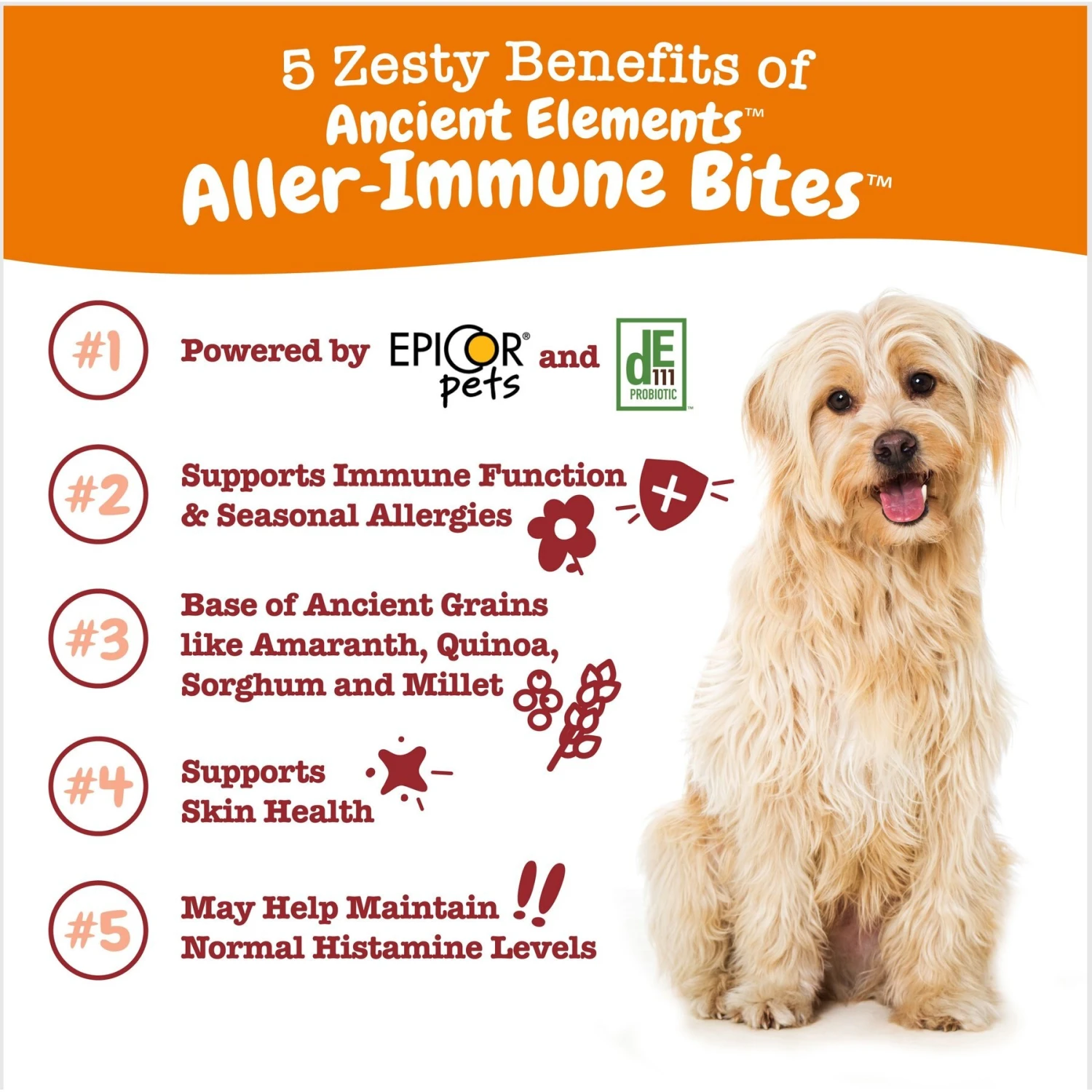 - Ancient Elements Aller-Immune Bites are chewable supplements with paw-some ingredients to support your dog’s immunity.