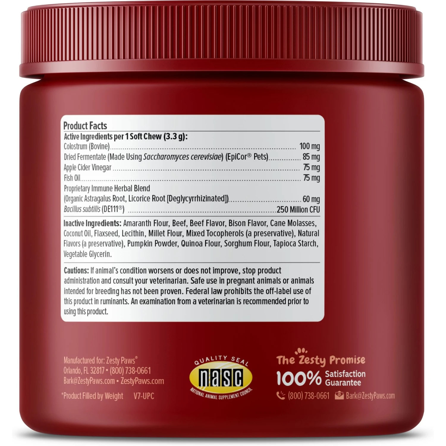 If sensitive skin or seasonal allergies give your dog a hard time, Zesty Paws Ancient Elements Aller-Immune Bison Flavored Soft Chews Allergy & Immune Supplement for Dogs are functional supplements that may be able to help give your canine the support she’s craving! These chews include EpiCor, wild Alaskan salmon fish oil (with omega-3 fatty acids for skin health), colostrum, astragalus root, probiotics (with Lactobacillus acidophilus), and apple cider vinegar. These premium ingredients work together in this functional supplement to provide dogs with seasonal allergy support along with immune, skin, and gut function, and may even help maintain normal histamine levels.