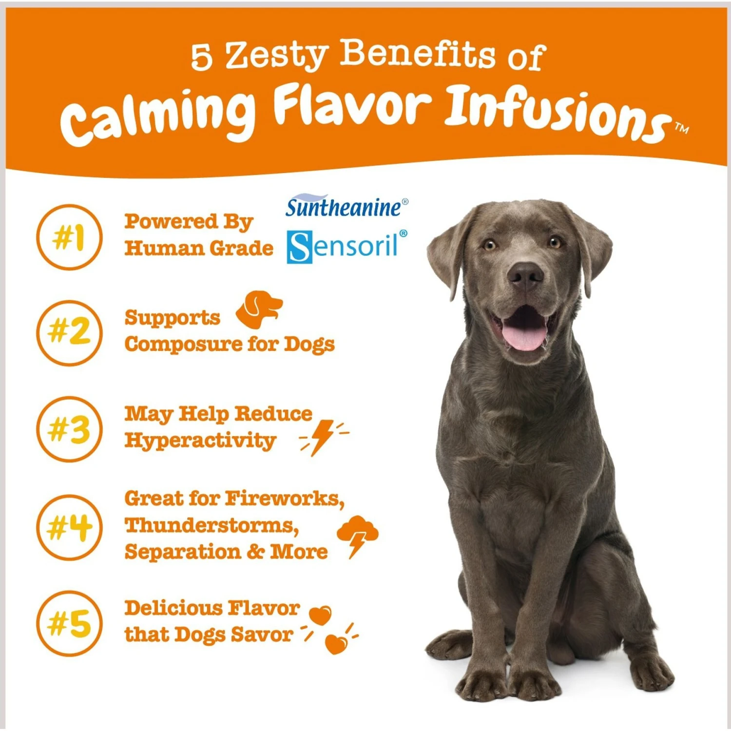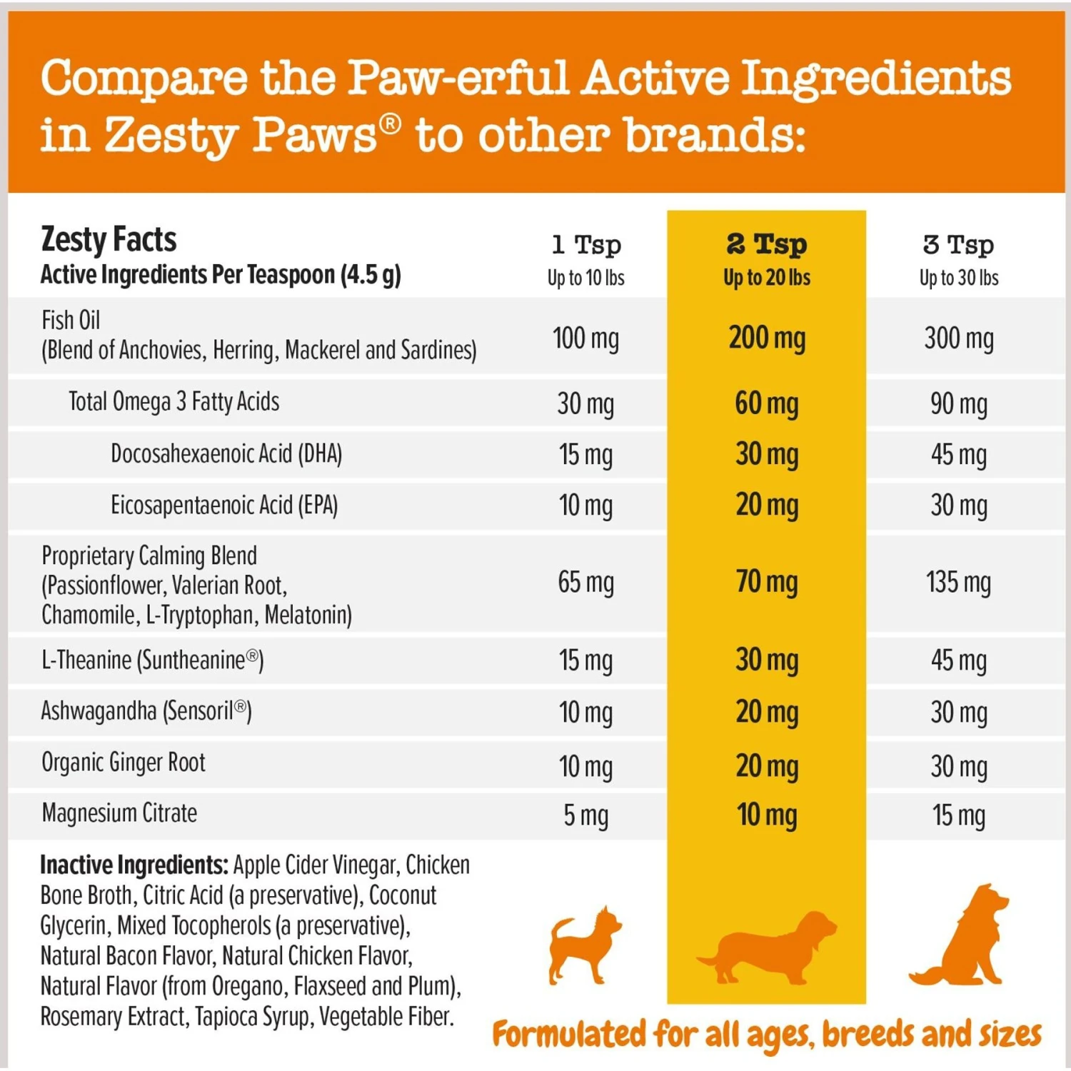 Thunderstorms got your furry friend down? Keep him calm, cool and collected with a dose of Zesty Paws Calming Flavor Infusions Chicken Flavored Liquid Calming Supplement for Dogs. This liquid calming supplement offers a simple and effective way to boost your pet’s daily diet—with a tasty bone broth base chock full of nutrition, you can’t go wrong with this path to daily relief and comfort. Ingredients such as L-theanine, ashwagandha, chamomile, valerian root, L-tryptophan, and fish oil unite to minimize the effects of scary events like thunderstorms and fireworks. Ditch difficult pills for this yummy calming treatment!