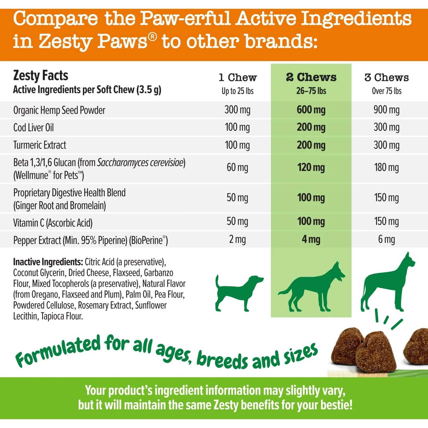 - Zesty Paws Aller-Immune Bites are soft chews with premium ingredients that support your pet’s immune system to keep them feeling zesty.