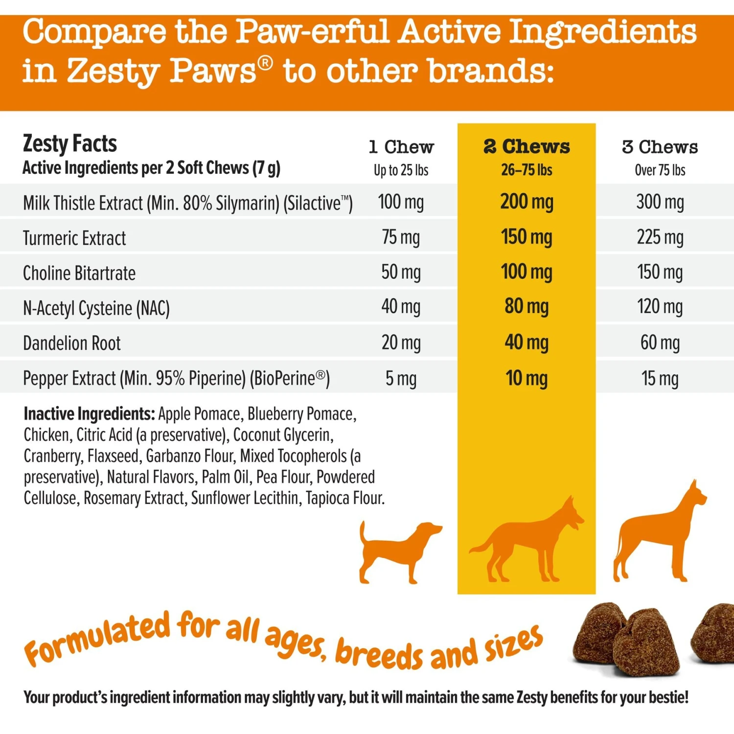 - Zesty Paws Liver Support Bites are chewable supplements that support canine liver health.