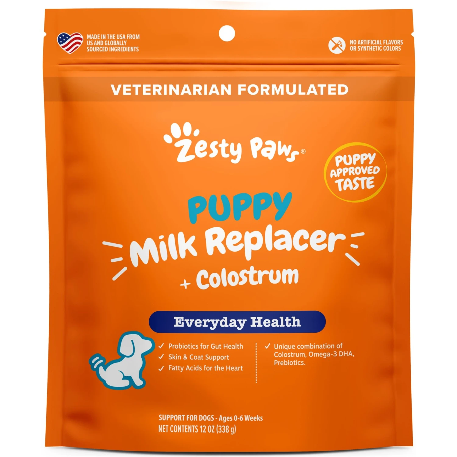 - Zesty Paws Puppy Milk Replacer features colostrum plus omega-3 DHA, prebiotics, probiotics and a great taste to support your pup’s everyday health.