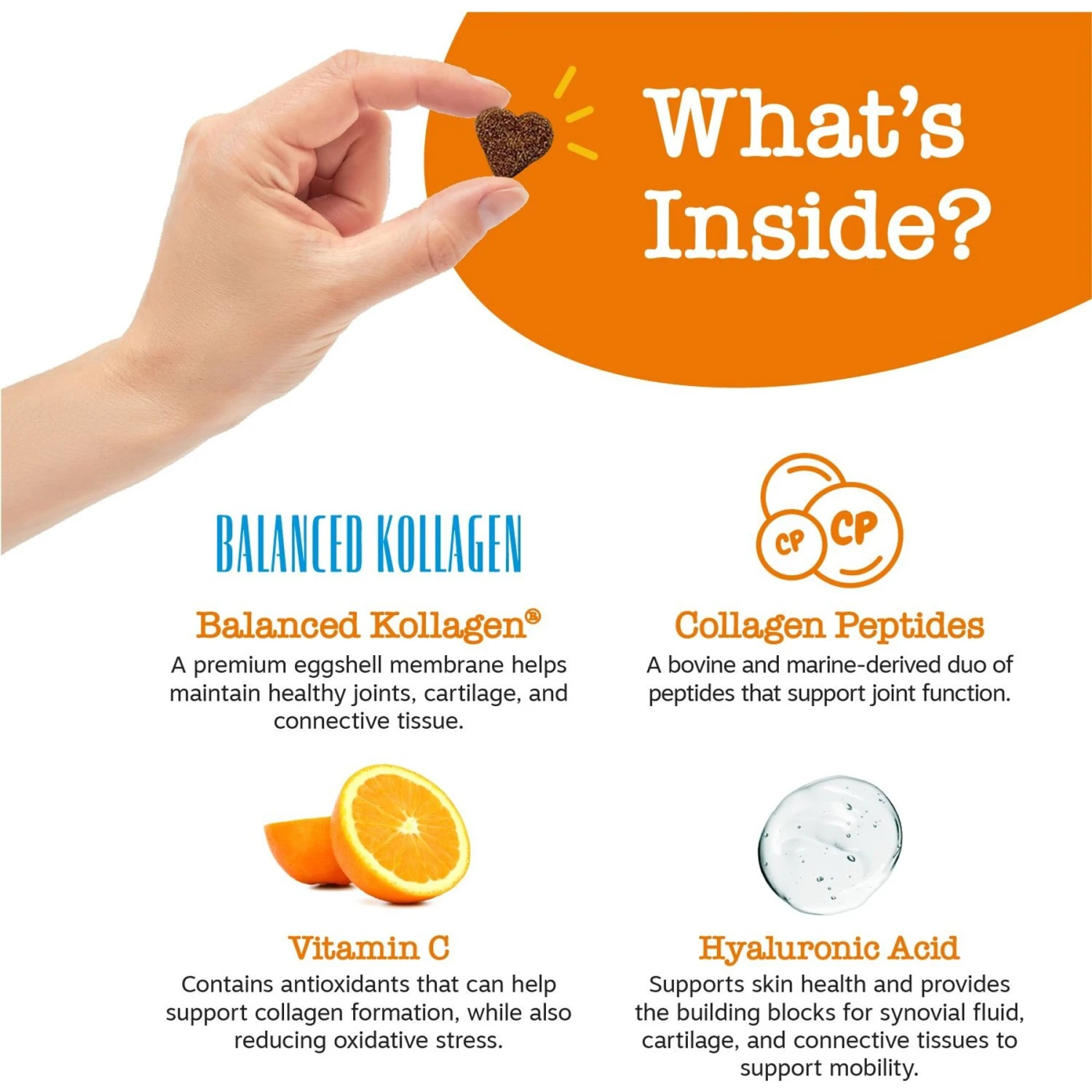 - At 150 mg per chew, Balanced Kollagen is a premium form of eggshell membrane that helps maintain healthy joints, cartilage, and connective tissues for your dog.