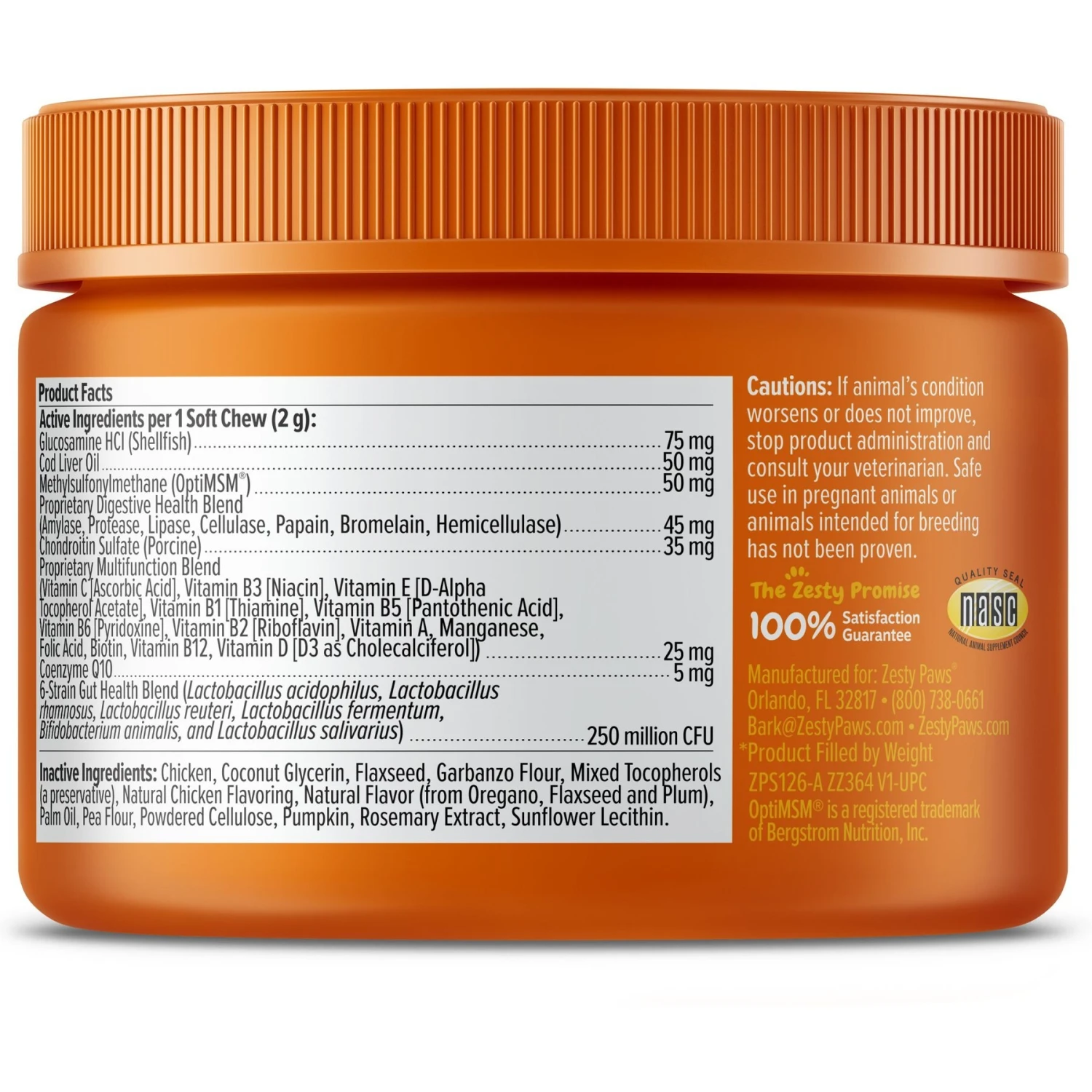 - Features OptiMSM (MSM) and a glucosamine chondroitin duo to support hips and joints, plus cod liver fish oil and a multivitamin blend to support performance and mobility.