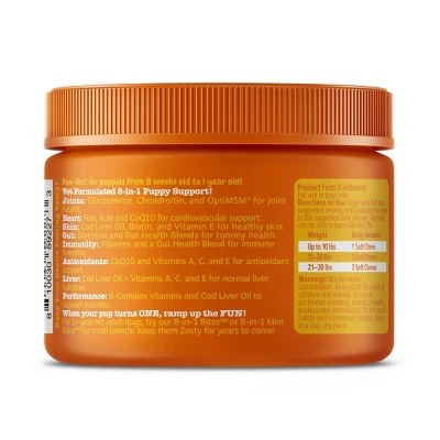 - This multifunctional soft chew supplement supports 8 areas of functional dog wellness for puppies from 8 weeks old to 1 year old.