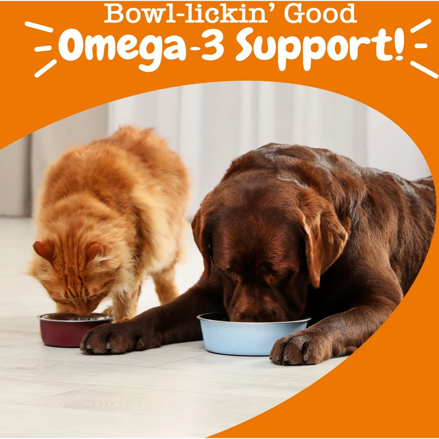 - Provides a blend of Alaska-sourced pollock and salmon oils to help keep your canine or feline fav feeling pawsome.